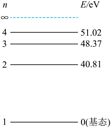 离子相对基态的能级图(设基态能量为0)如图所示。用电子碰撞