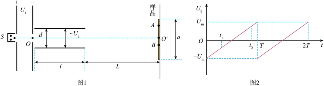 为平行于两极板的中轴线)。极板长度为l、间距为d,关系如图2所示。长度为a的样品垂直放置在距