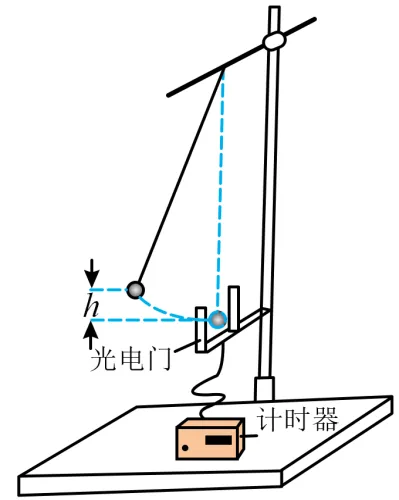 将小球拉离平衡位置并记录其高度h,然后由静止释放(运动平面与光电门光线垂直),记录小球经过光电门的挡光时间