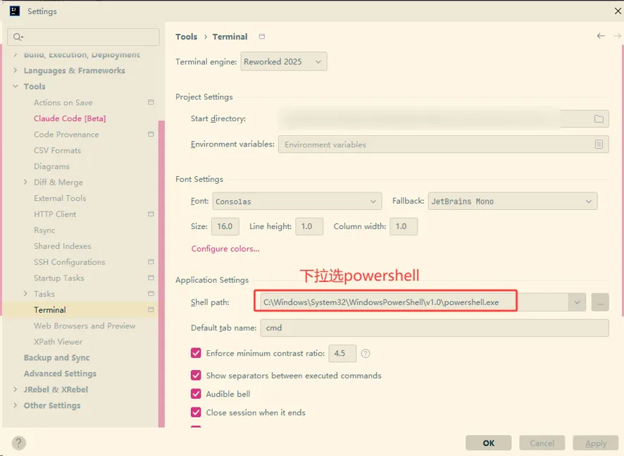 第一步,将控制台设置为powershell