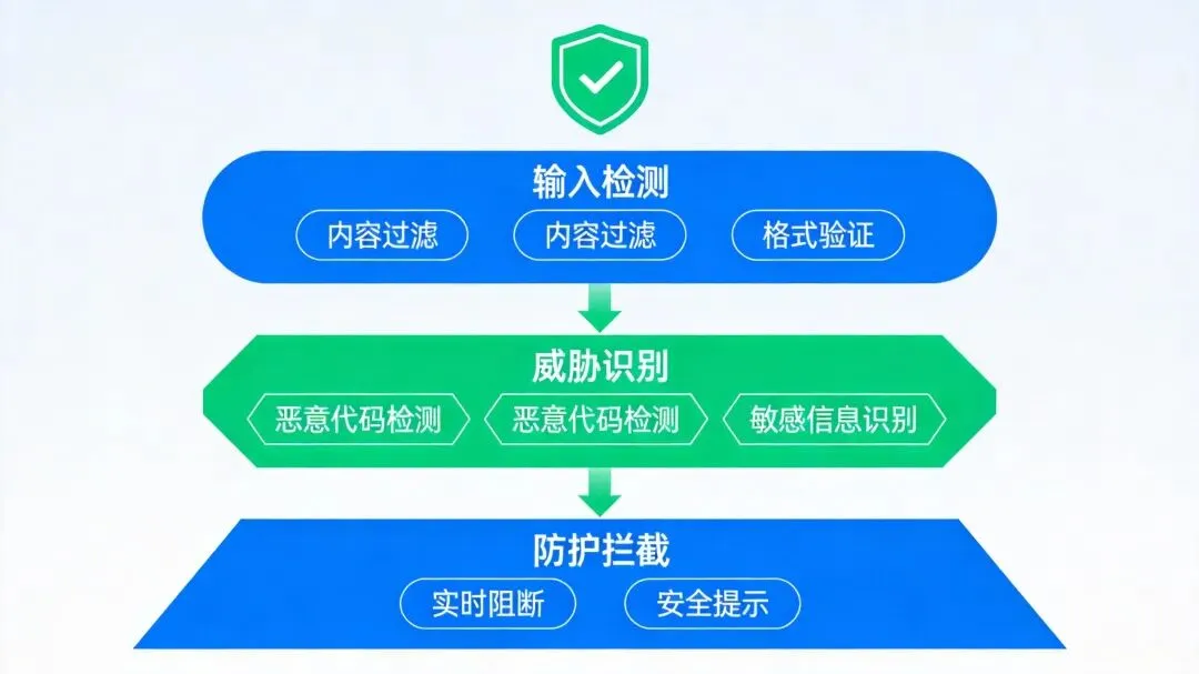 它会在执行前检测潜在的注入攻击,防止恶意输入绕过你的指令。