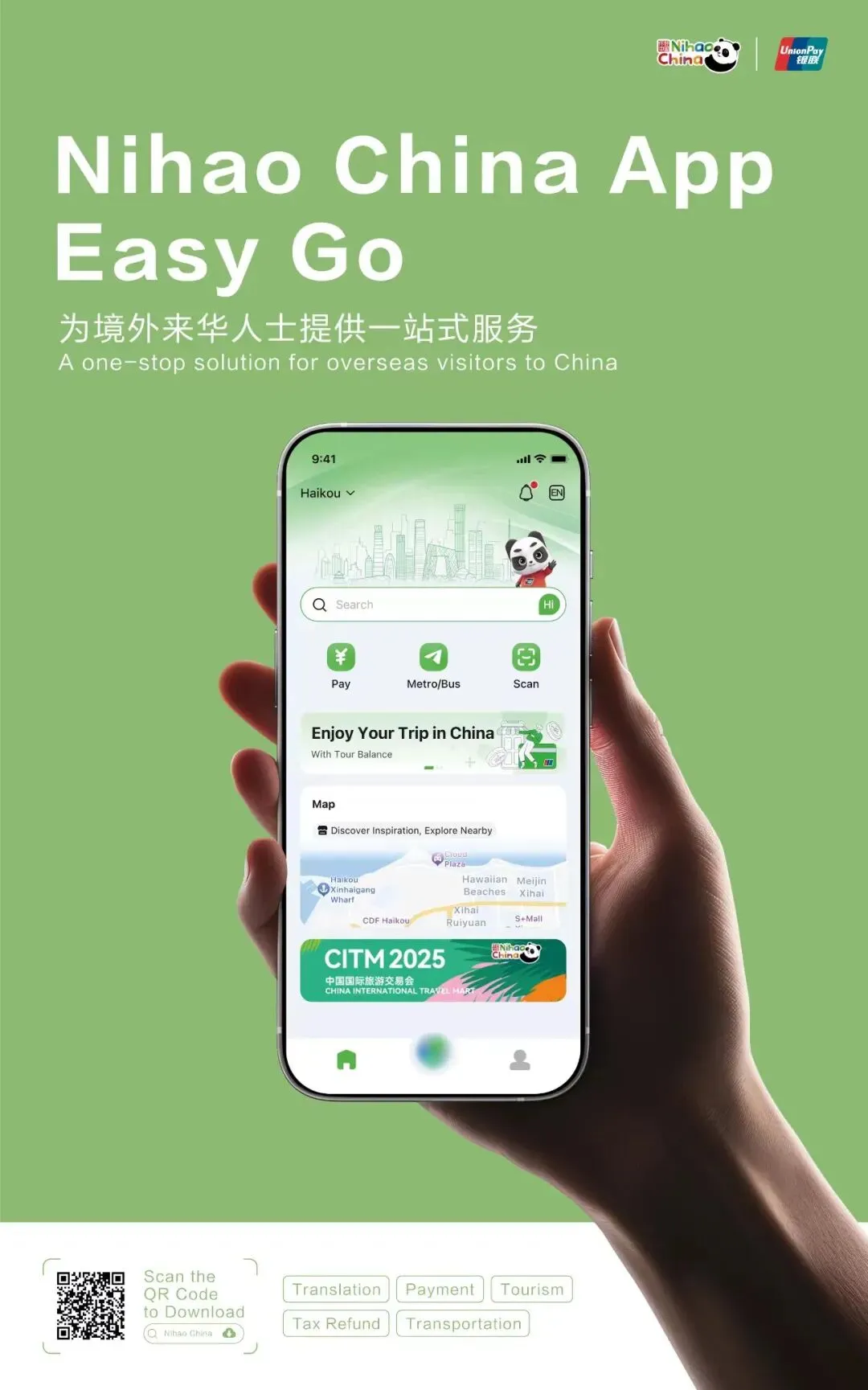 为向全球游客提供更便捷、更贴心的旅行体验,中国银联正式推出“你好!中国”(Hello China)APP,为境外来华人士打造一站式智能服务平台,让每位游客都能轻松开启中国之旅!