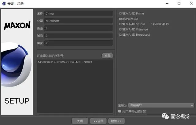 这里选择第一个“CINEMA 4D”,再点击继续