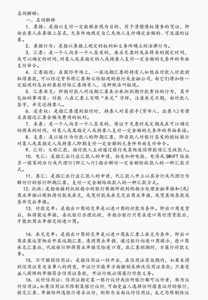 于是我收集好了整套的国际结算的期末复习资料的PDF,