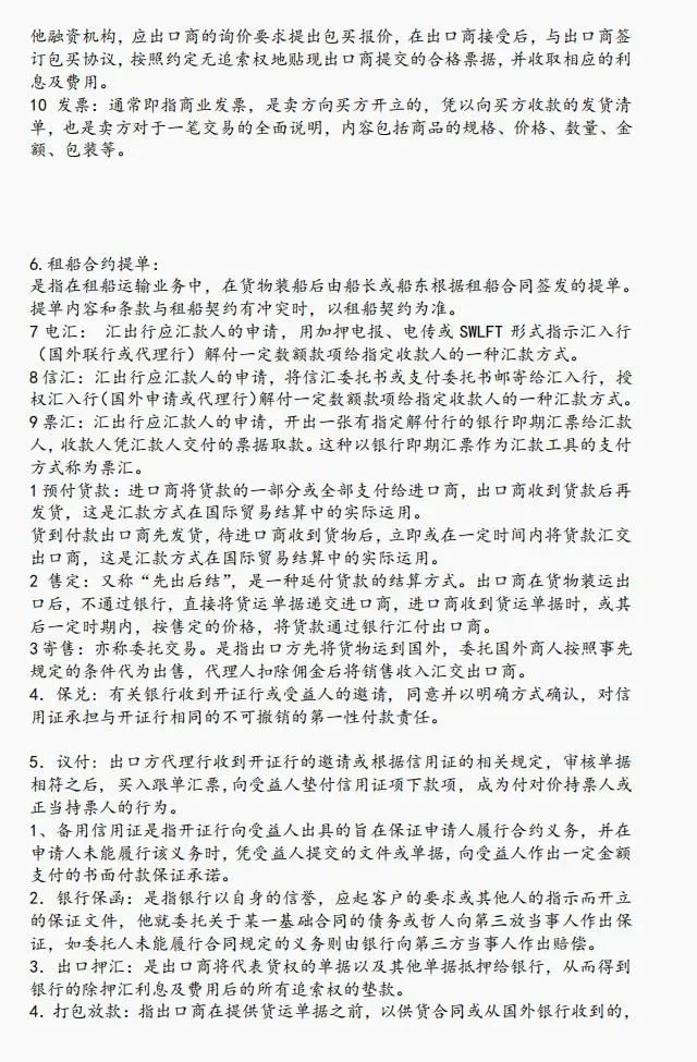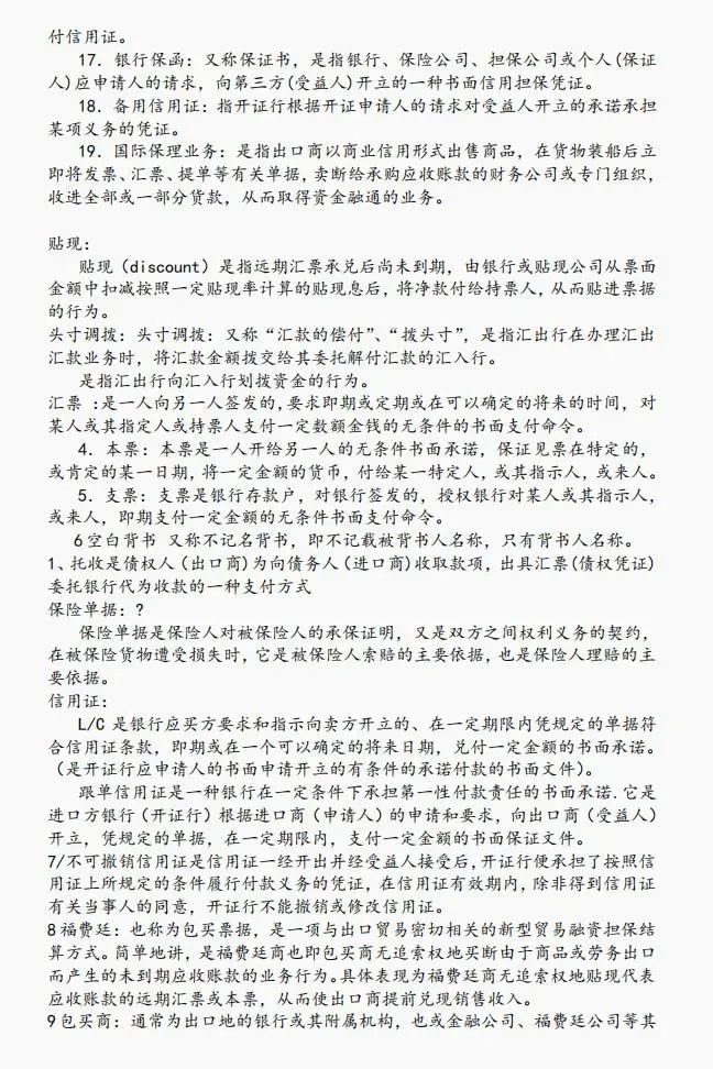 国际结算 的知识点太多了