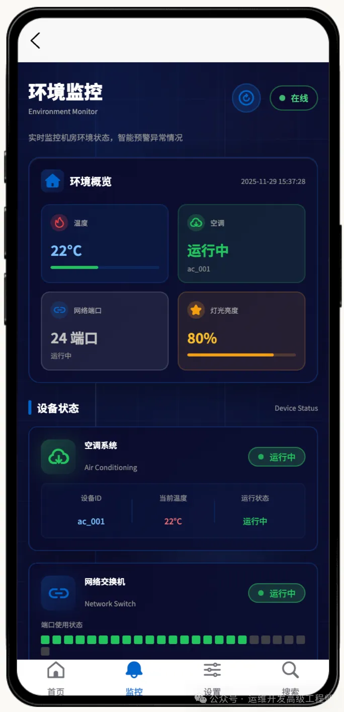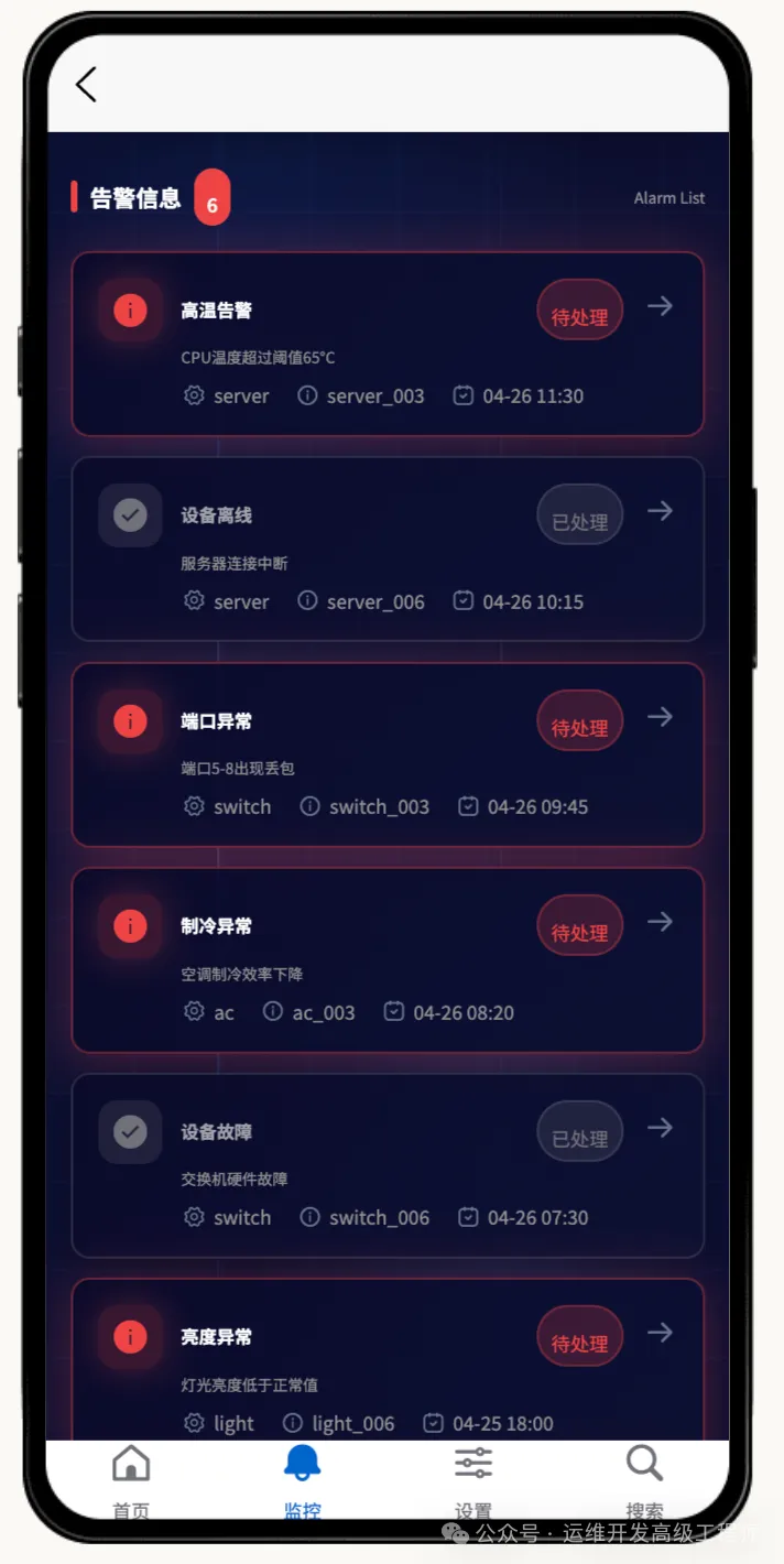 同时还设计了告警通知功能,能够将环境告警信息实时通知运维人员。