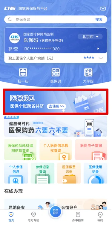 1.打开国家医保服务平台APP,首页点击【医保钱包】