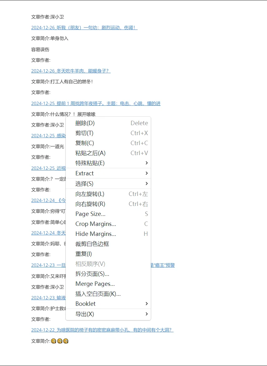 拆分操作:若需将PDF文件的每一页单独保存,只需在空白处右键点击,选择“Export”,再点击第三个选项进行保存,并设置相应的保存路径和文件名。若需单独保存PDF文件中的特定几个页面,首先需选中这些页面,然后在文件上右键点击,选择“Export”,再点击第二个选项进行保存,并设置相应的保存路径和文件名。
