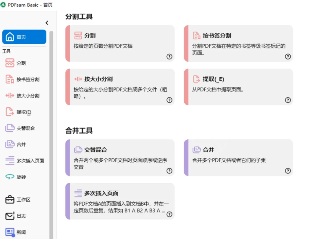 合并是最常用的PDFsam Basic功能,它让您将PDF文件结合在一起