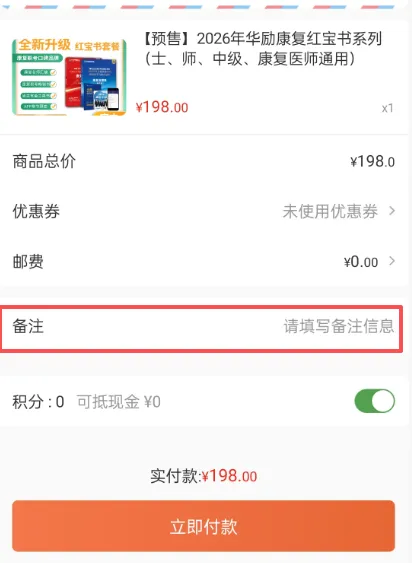 以往购课、买书时,需要客服开通专属权限、或有特殊开票需求,总担心沟通不清。现在结算页新增订单备注,你的需求可直接填写,例如 “开票信息已附,烦请核对”,客服会按备注精准处理,无需反复沟通,订单处理更高效准确。