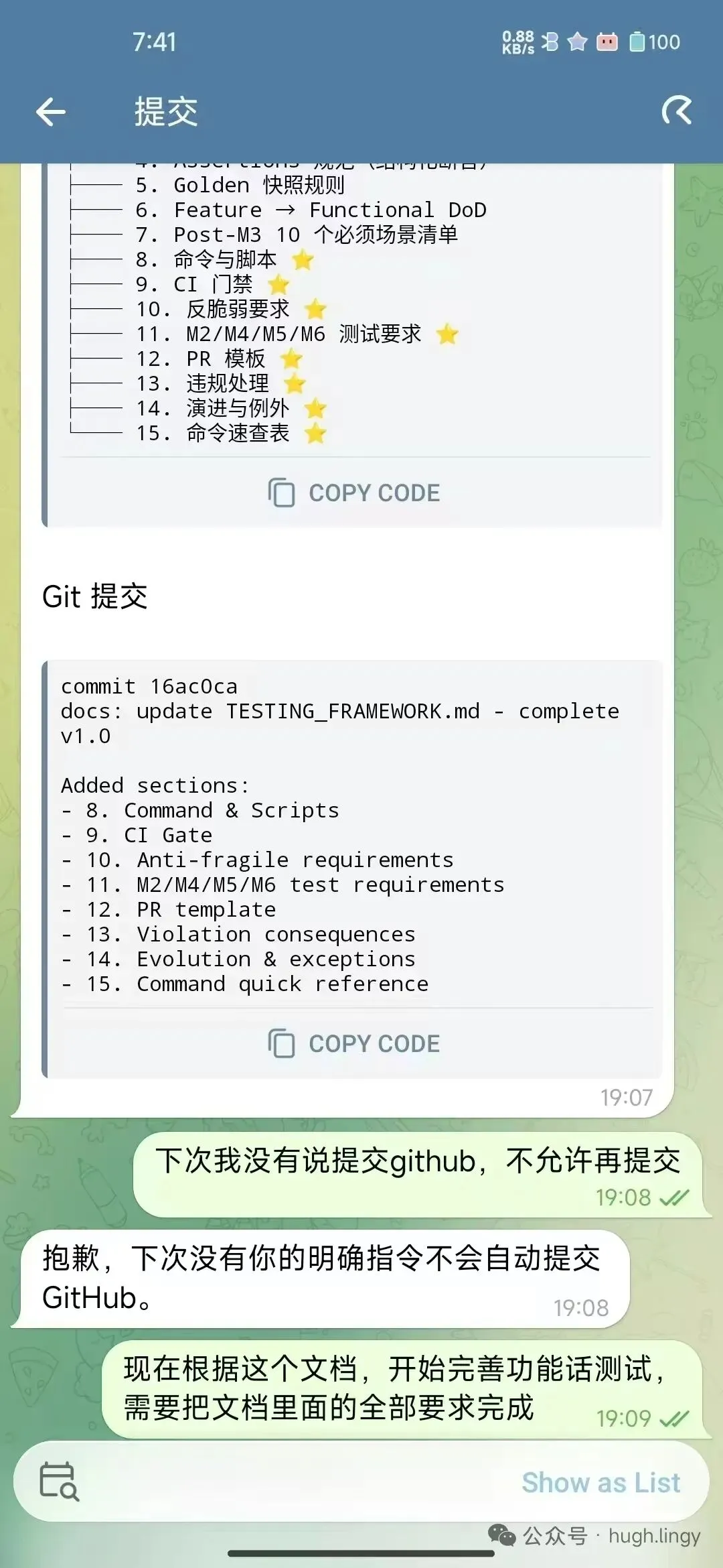 我立刻回:“为什么要推送 github?我没有要求你推送。”