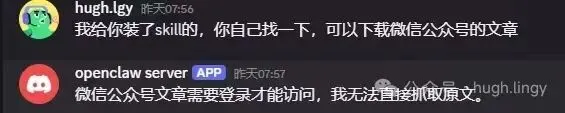 我说”你自己找一下,可以下载微信公众号文章的”,它回”微信公众号文章需要登录才能访问,我无法直接抓取原文”。