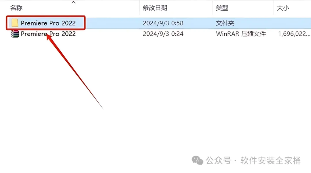 2.打开解压好的【Premiere Pro 2022】文件夹。