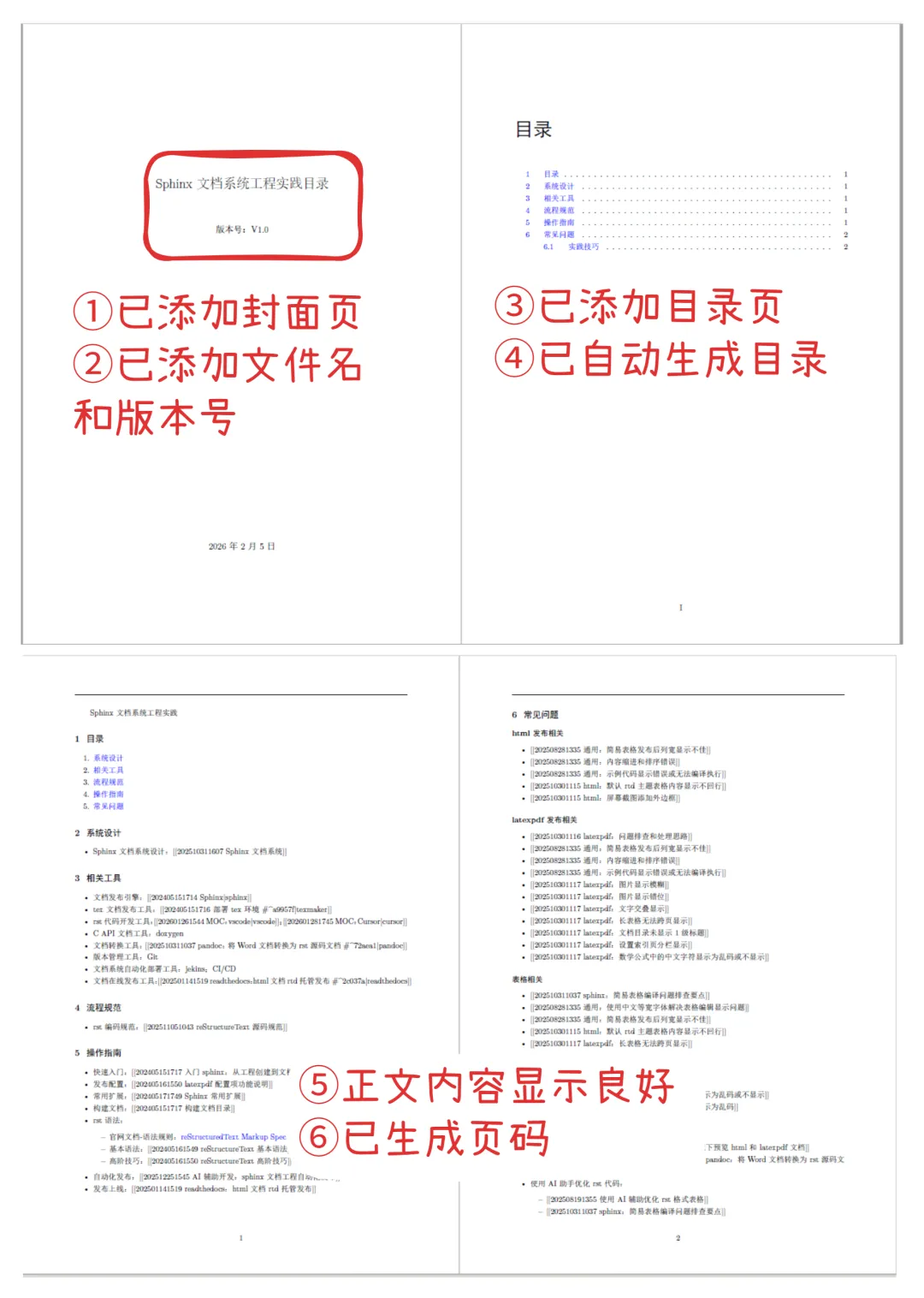 6)文档封面的版本号与-v参数输入一致。