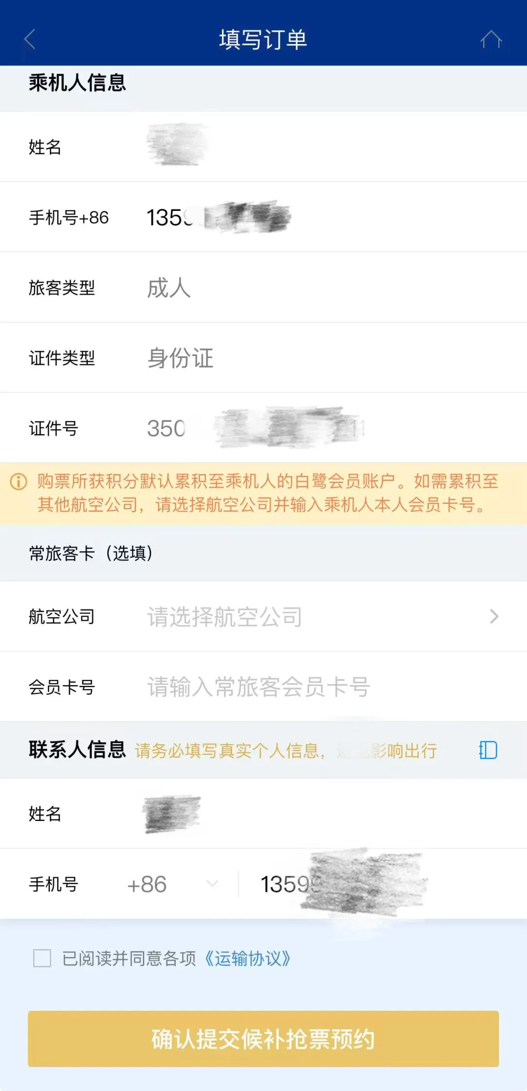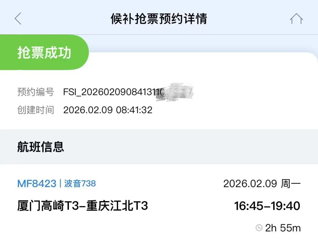 厦航APP的候补购票功能,