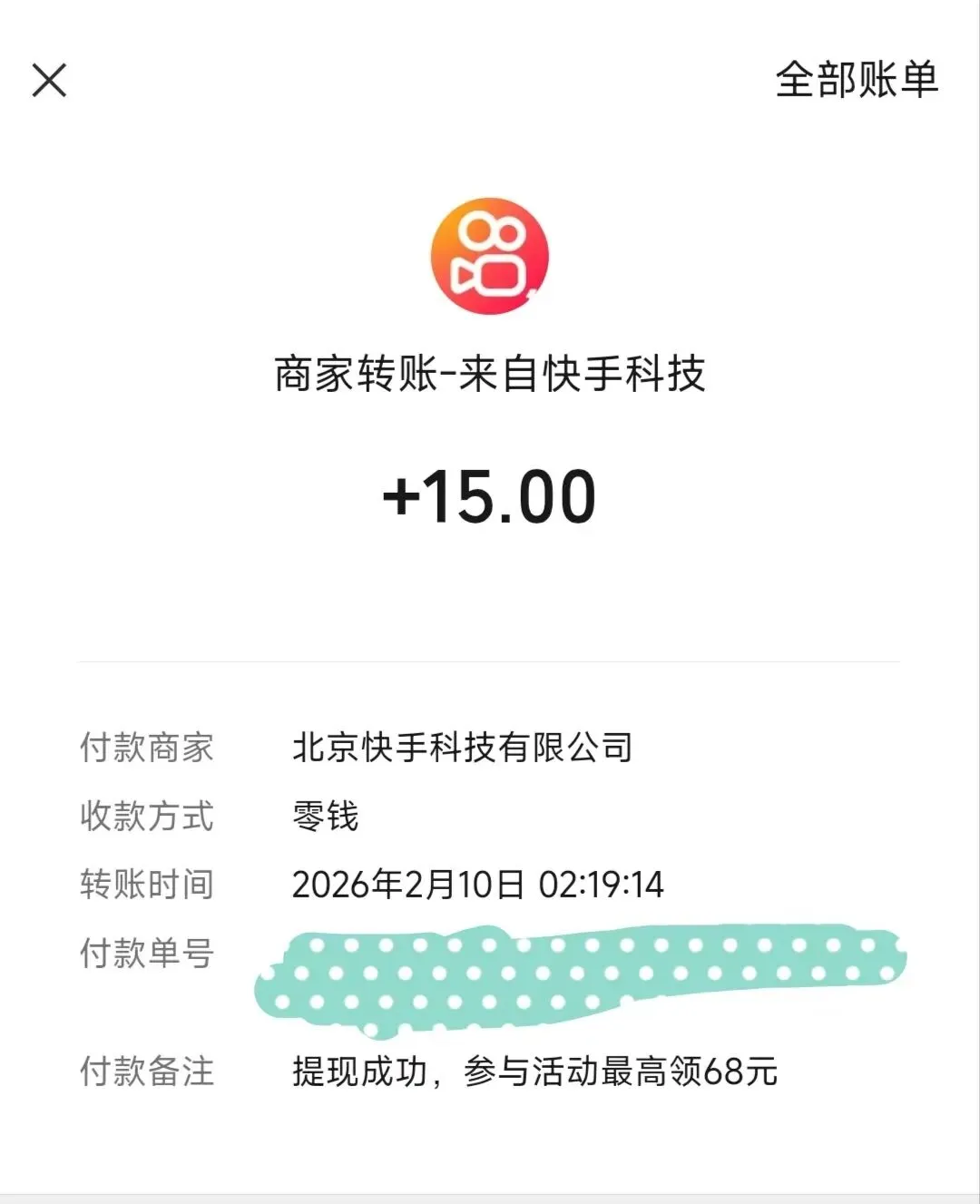 2026年1月28日下载的快手极速版App,2月10日,已提现30元,每次提现15元。