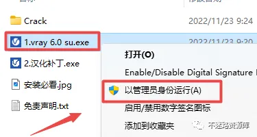 2.打开刚刚解压的文件夹,鼠标右键点击“1.vray 6.0 su.exe”选择“以管理员身份运行”