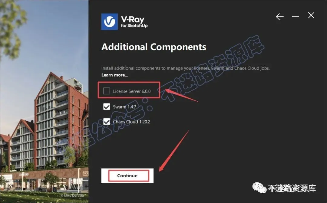 5.取消勾选“License Server 6.0.0”,点击“Continue”