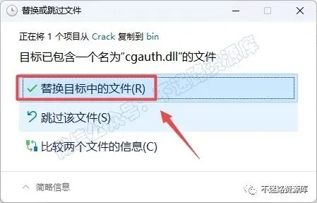 14.点击“替换目标中的文件“(若提示需要权限,点击继续)