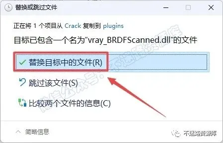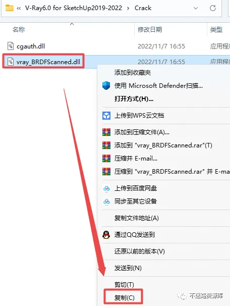 15.返回打开的“Crack”文件夹,选中“vray_BRDFScanned.dll”文件,鼠标右键选择“复制”
