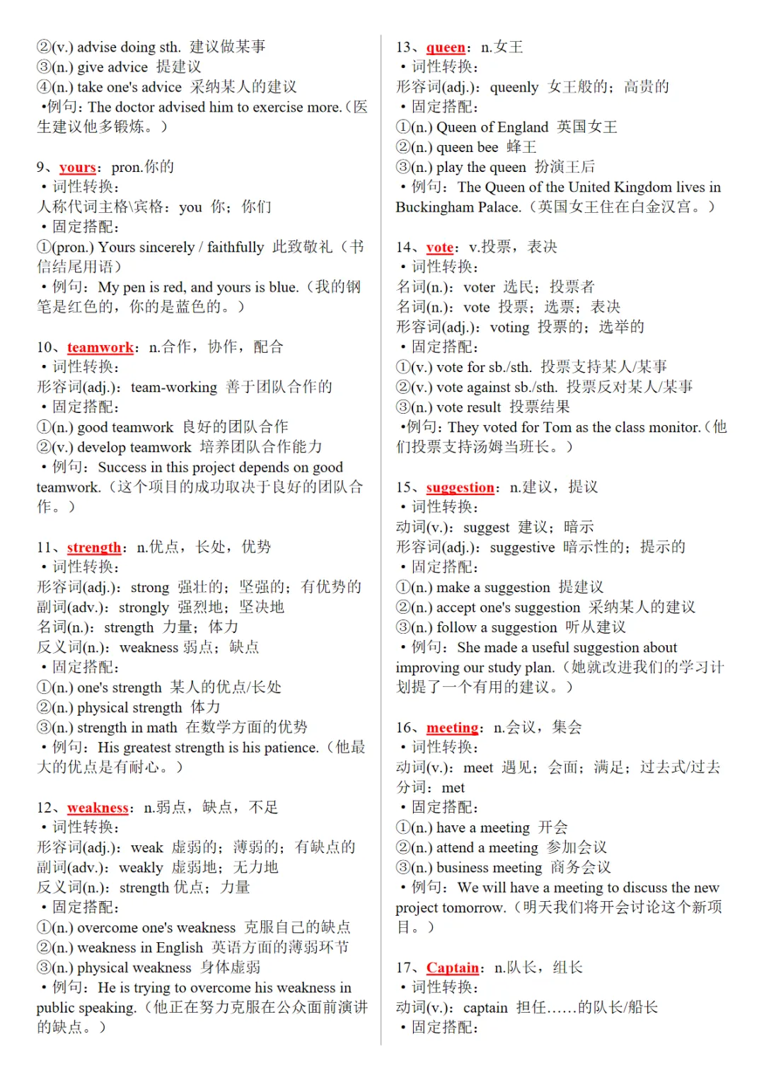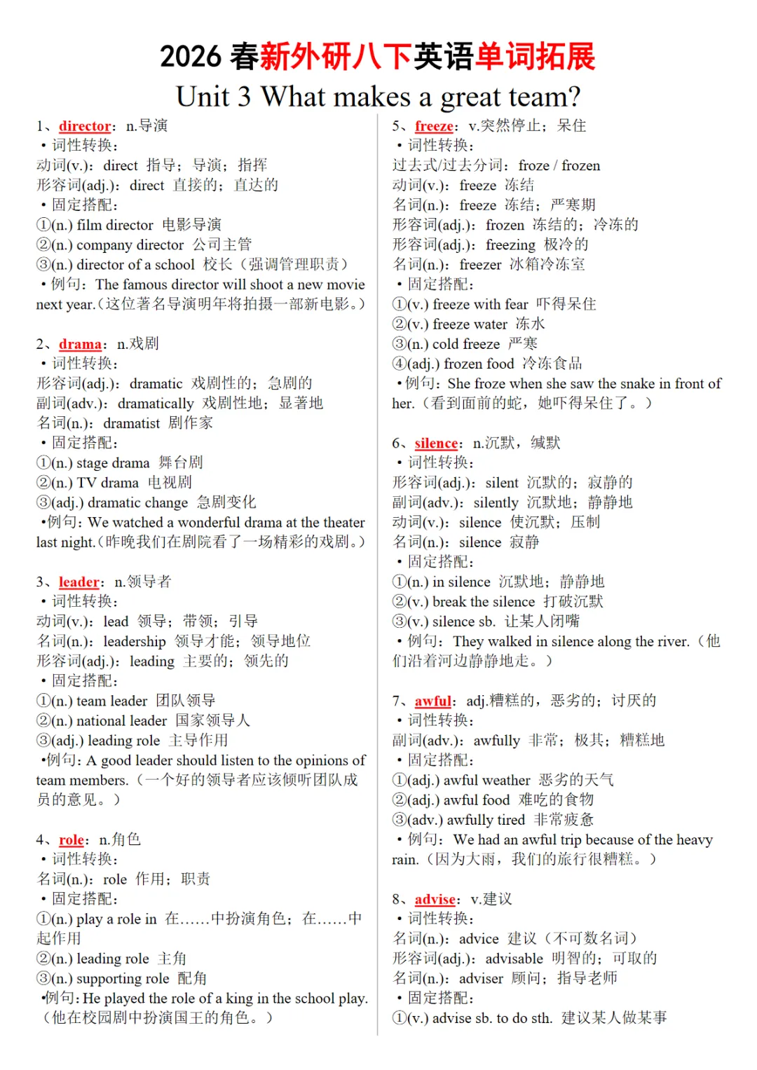 【免费下载】八年级(下)英语 Unit3 单词拓展《外研版》,PDF电子版,可打印