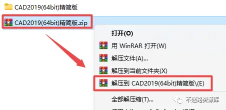 1.选中下载的压缩包,然后鼠标右键选择解压到“CAD2019(64bit)精简版”(没有解压选项点这里)