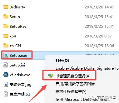 2.打开刚刚解压的文件夹,鼠标右键点击“Setup.exe”选择“以管理员身份运行”
