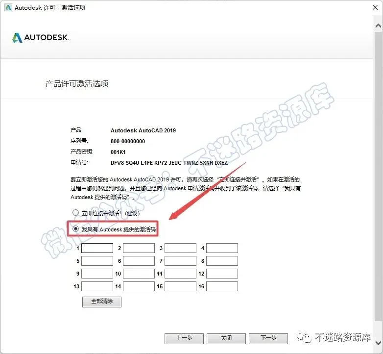 13.选择“我具有Autodesk提供的激活码”