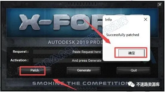 15.点击“patch“,弹出“successfully patched“,点击”确定“