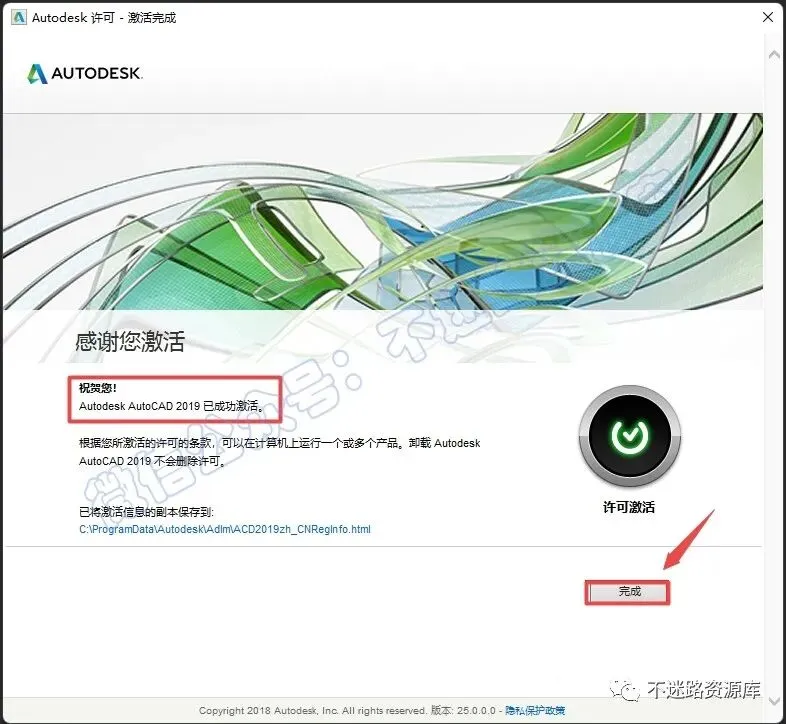 17.出现提示“已成功激活”,说明激活成功,点击“完成”