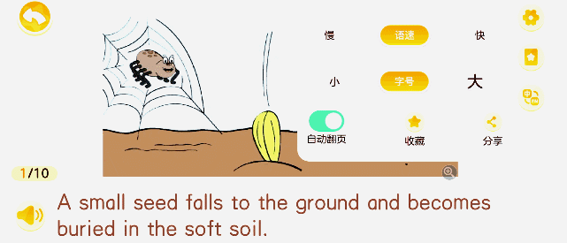 每个伴读动画的环节包括:阅读导入(让孩子了解一本书的特征,引起孩子阅读兴趣)、理解绘本内容、认识和跟读重点词汇。