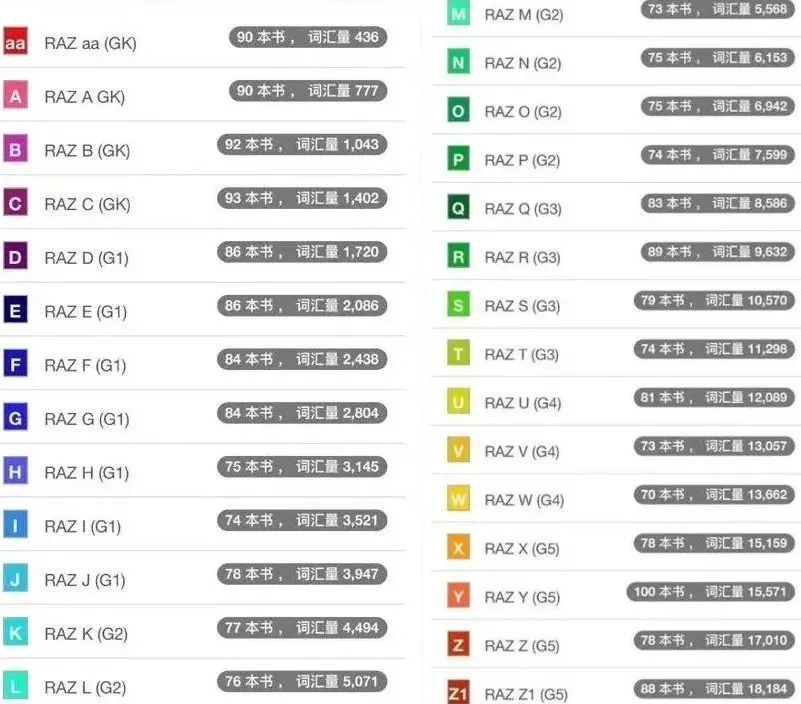不过也正因为RAZ的数量非常庞大,从aa到Z级,一共有2000多本书,比牛津树还多一倍。