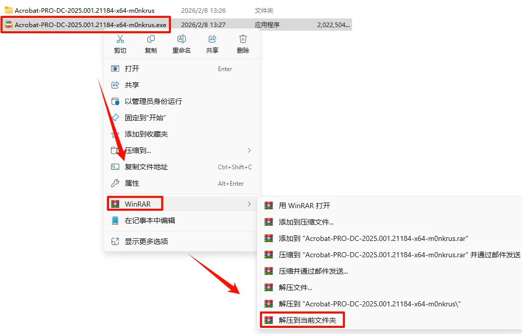 1.选中下载的压缩包,然后鼠标右键选择“解压到当前文件夹”(没有解压选项点这里)