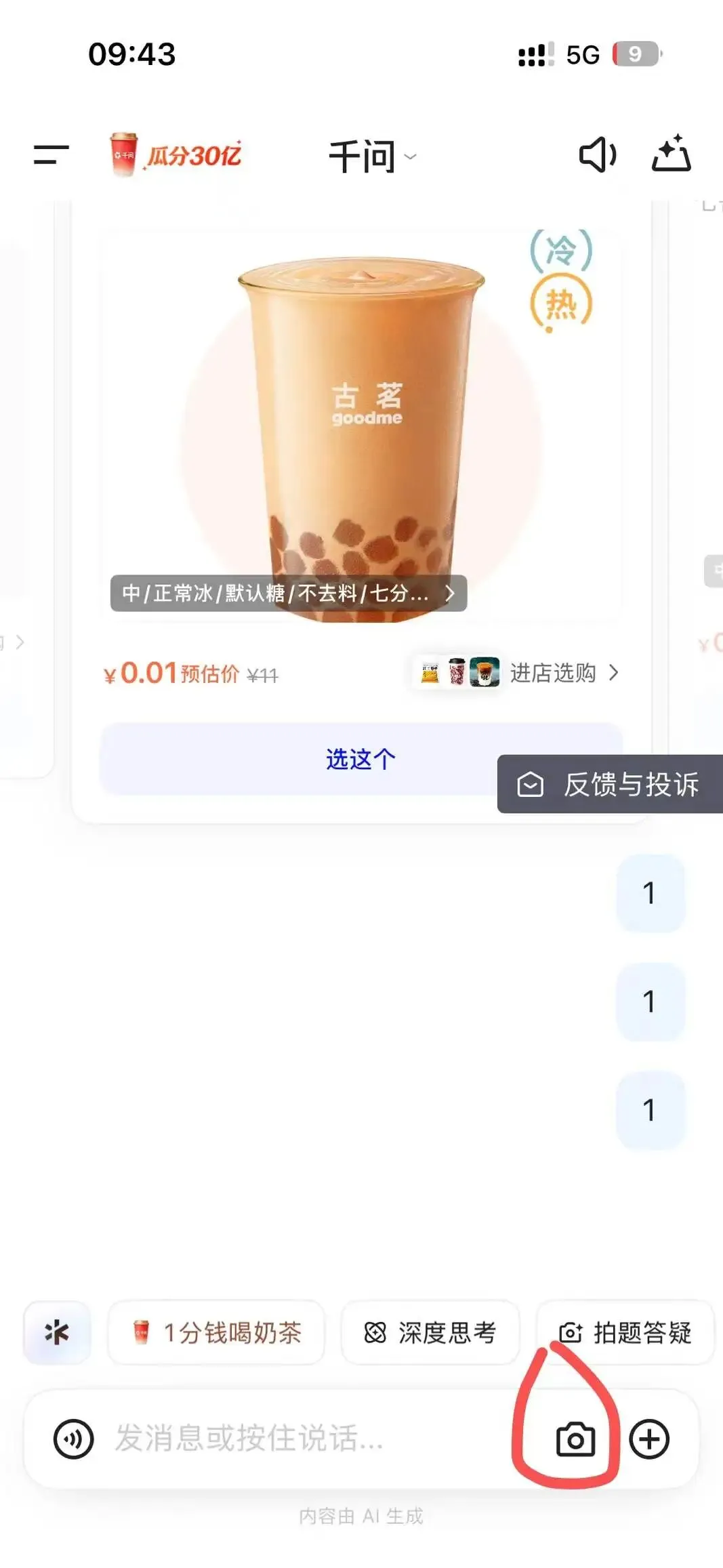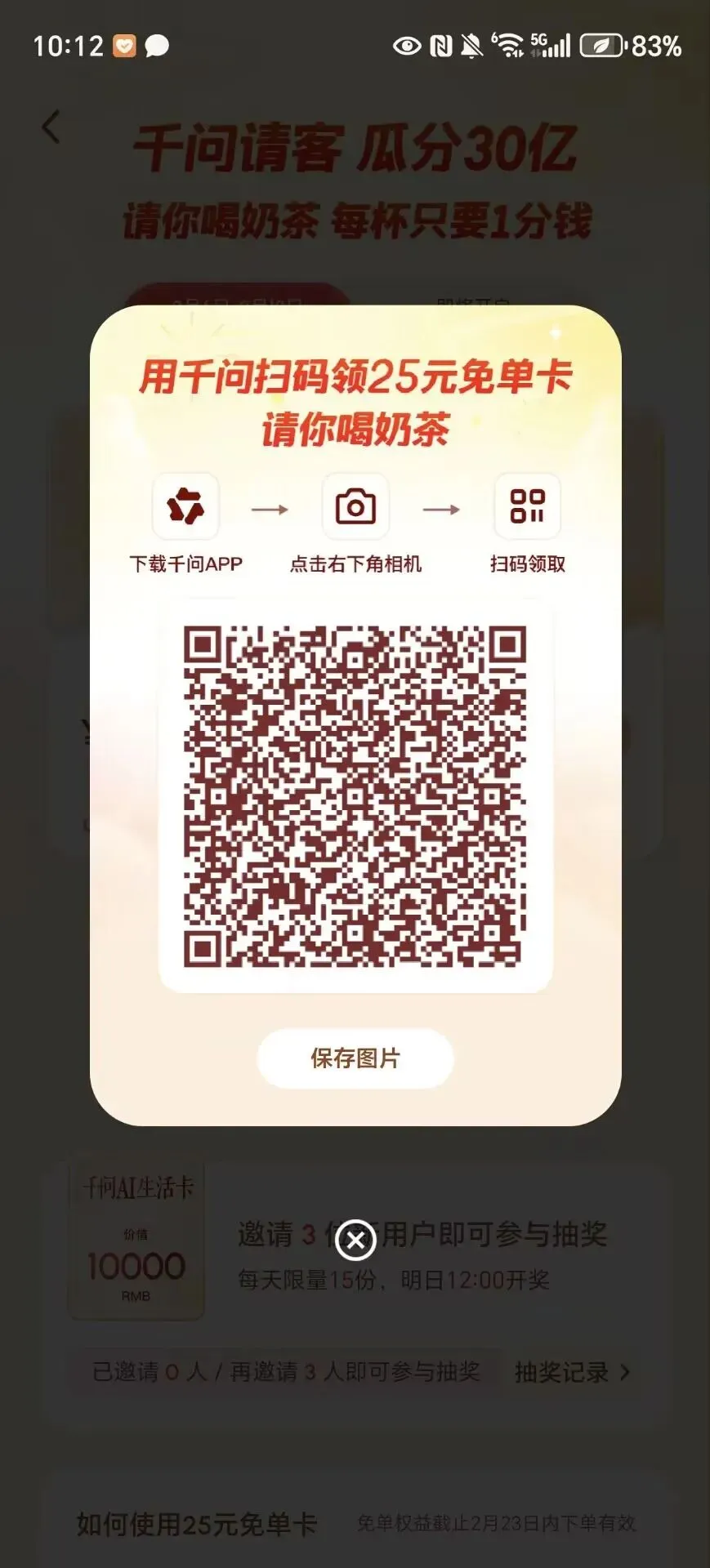 手慢无!千问APP隐藏福利:输句话就领免单卡,实现奶茶自由!