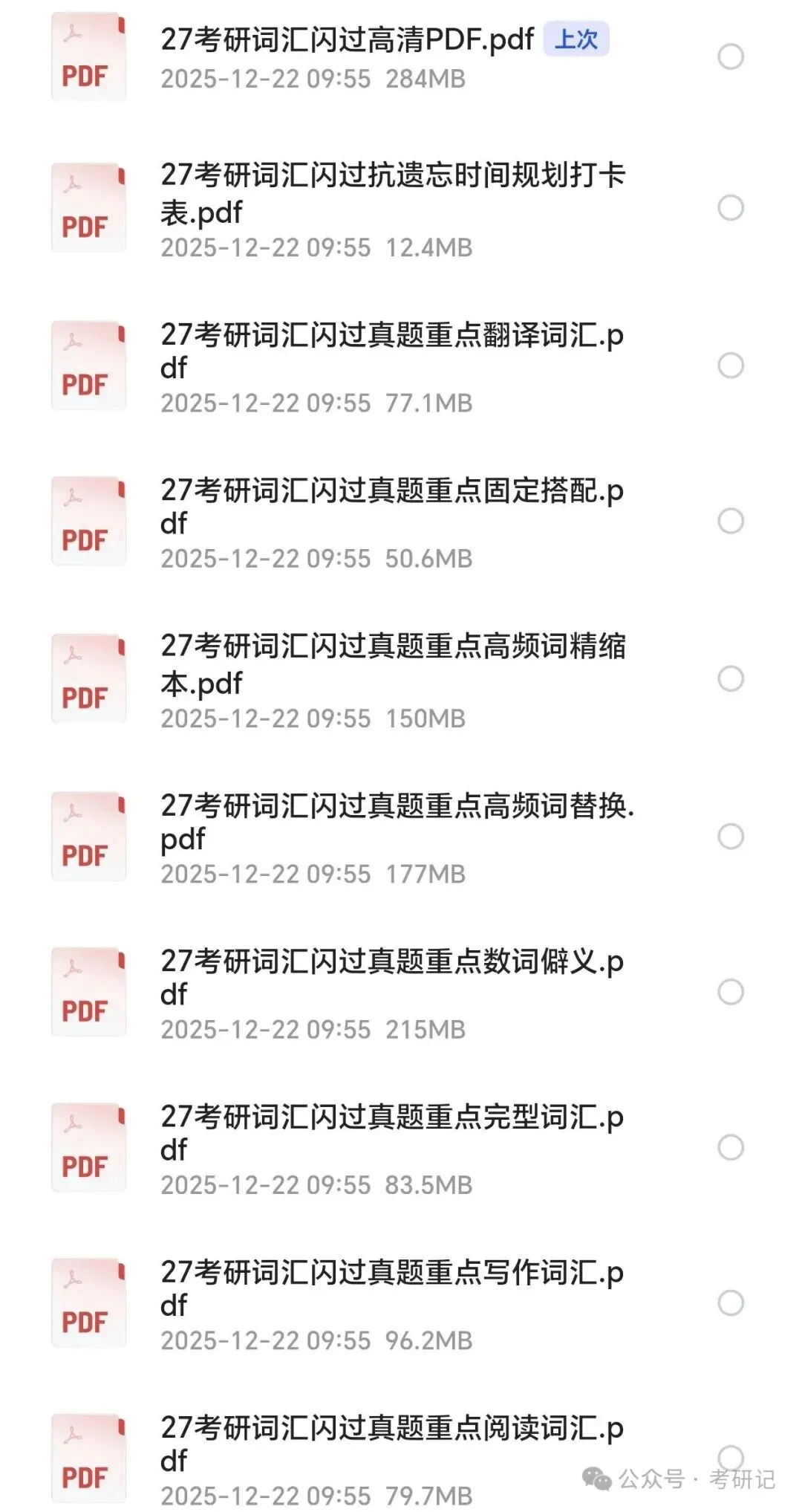 27考研英语《词汇闪过》PDF电子版 27考研词汇闪过(全套10本)高清PDF 来源网络,仅供学习交流,侵删 ↓↓↓ 第一步 点亮文末“赞”+”爱心❤” 第二步 点击公众号名片 回复:闪过 ⬆⬆⬆ 第一步:点击上方卡片关注公众号 第二步:回复关键词 “闪过” 点点赞 点分享 点喜欢