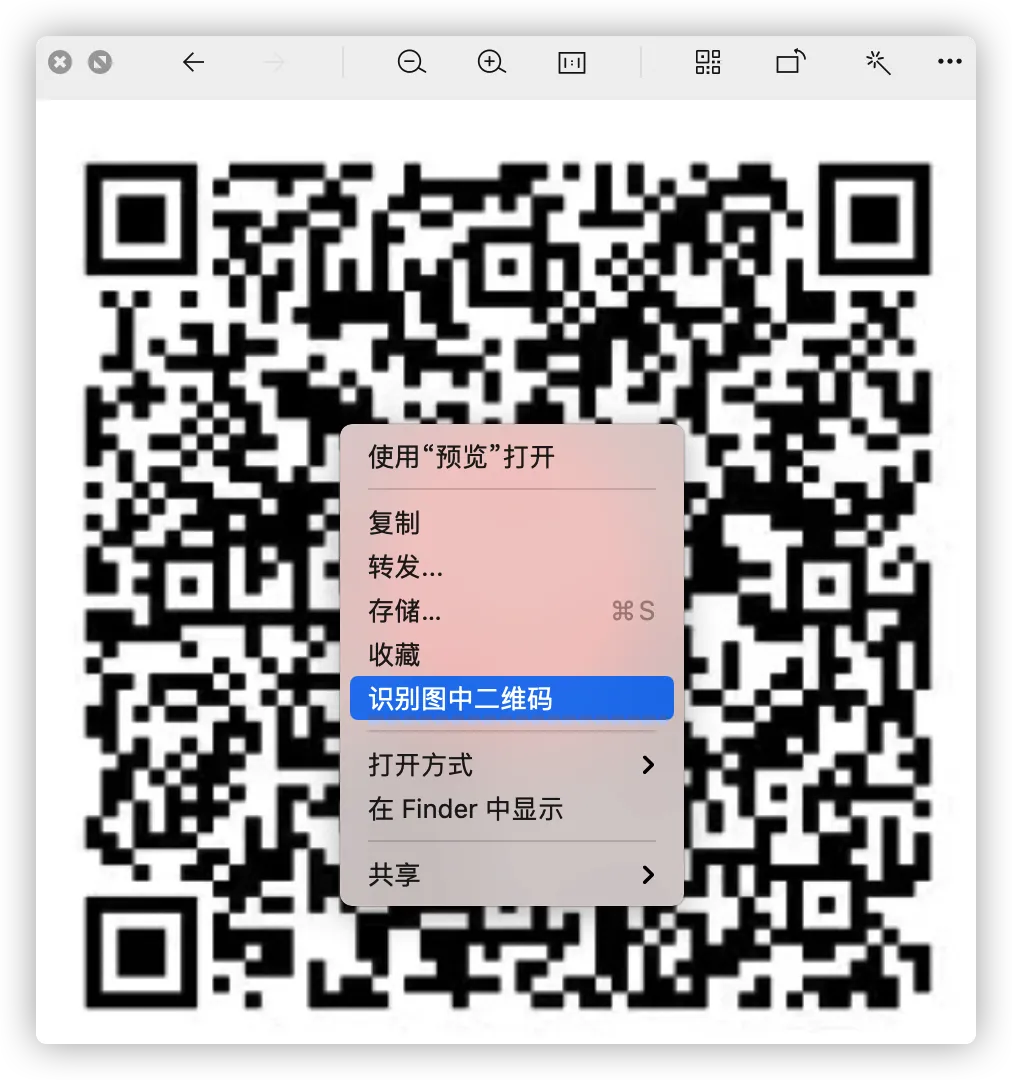 只要打开图片,右键选择「识别图中二维码」即可跳转链接。