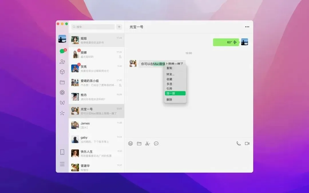 此外,本次更新中,Mac 版微信还新增了快速搜索功能。