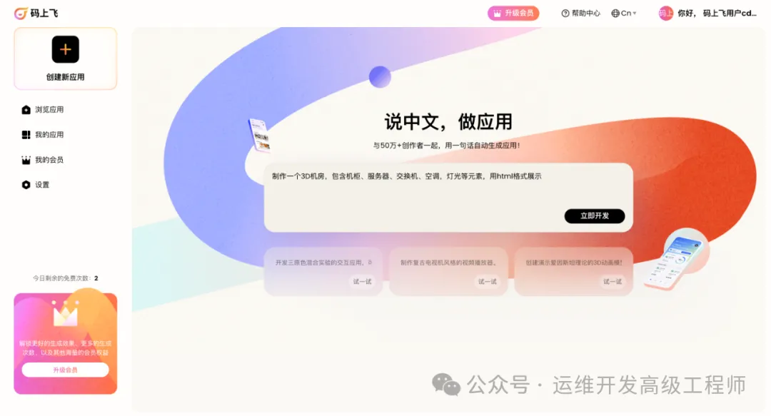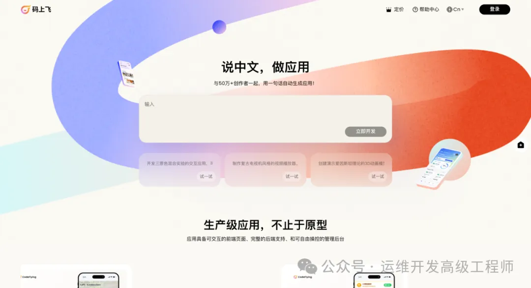 码上飞采用多Agent混用大模型的方法来进行应用的生成与开发,通过理解人的语言描述来生成满足需求的应用,如果你有需要,赶快去官网尝试吧