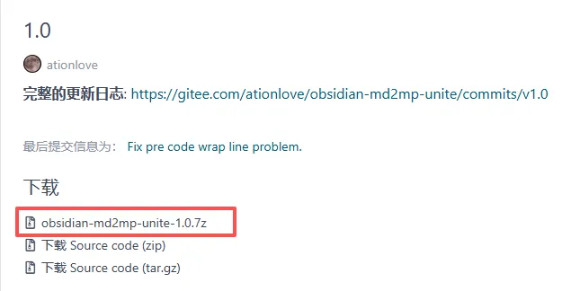 https://gitee.com/ationlove/obsidian-md2mp-unite/releases/tag/v1.0