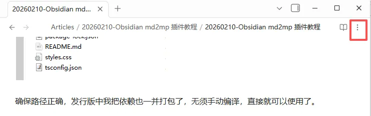 +++author = 'Ation'title = 'Obsidian md2mp 插件教程'description = '安装,使用'date = '2026-02-10T11:20:49+08:00'tags = ['开发']draft = false+++