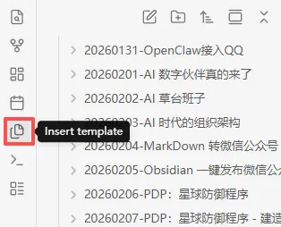 如此就配置好了,下次新建一篇文章后,点左侧的插入模板: