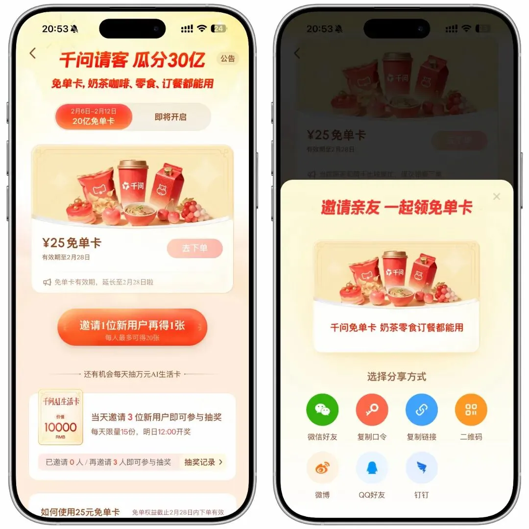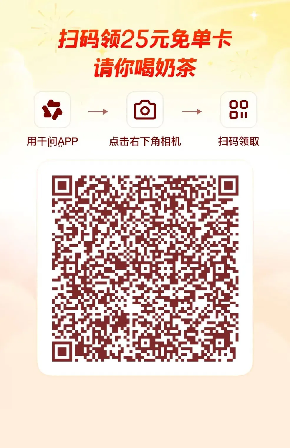 千问APP送大家免单券了,人人无门槛领取一张25元免单券,可以免费点外卖,点奶茶!