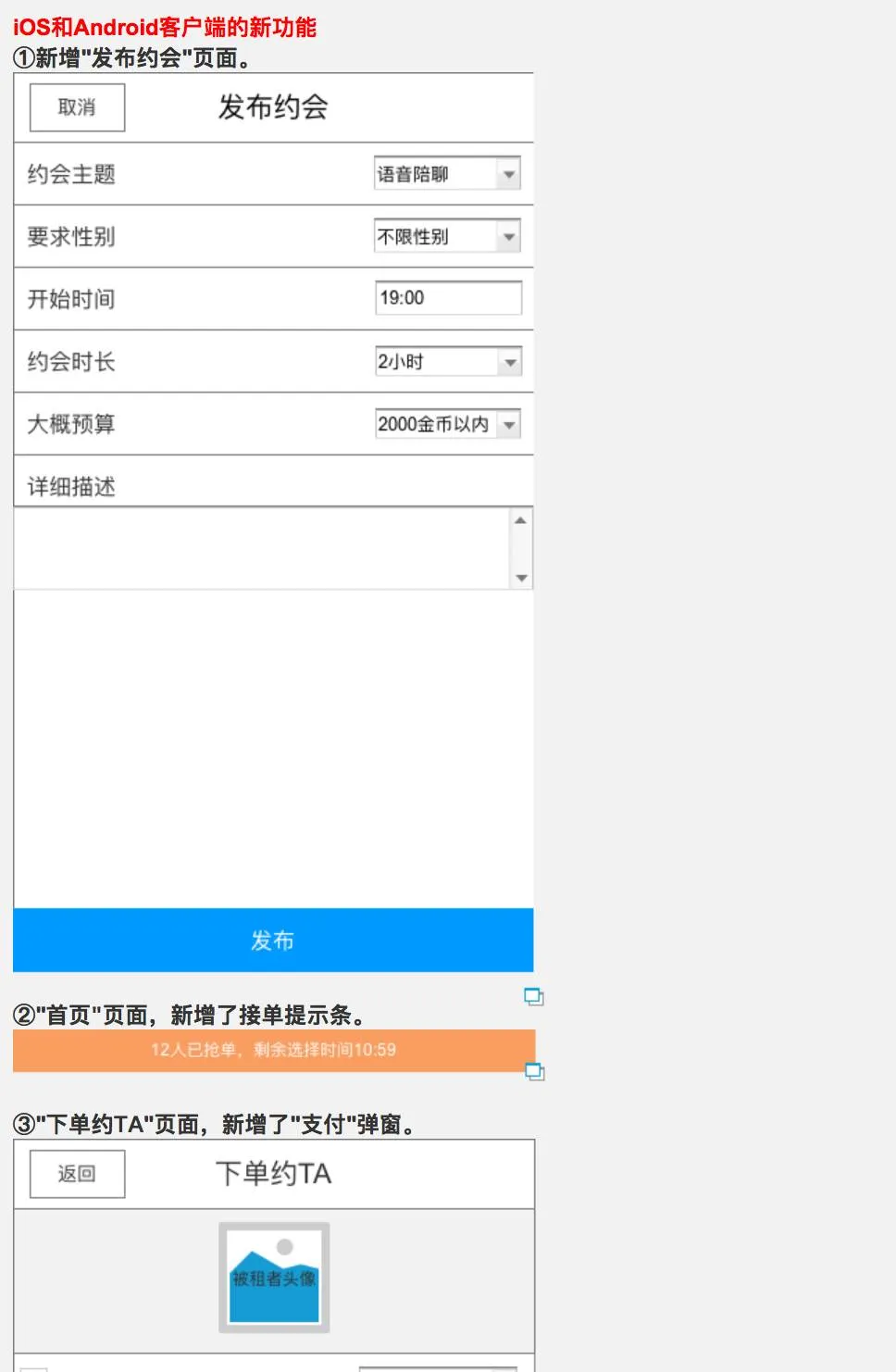 强调一点,按照我的方法来展现新功能、优化功能、修复BUG。看似没有需求列表舒服。但是用图文的方式,会让前端工程师和视觉设计师更容易理解需求。