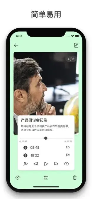 语音记事本,可在你录音的同时,添加备注,插入图片。应对采访,会议记录,课堂,讲座等重要场合,轻松记录每一个重要时刻。