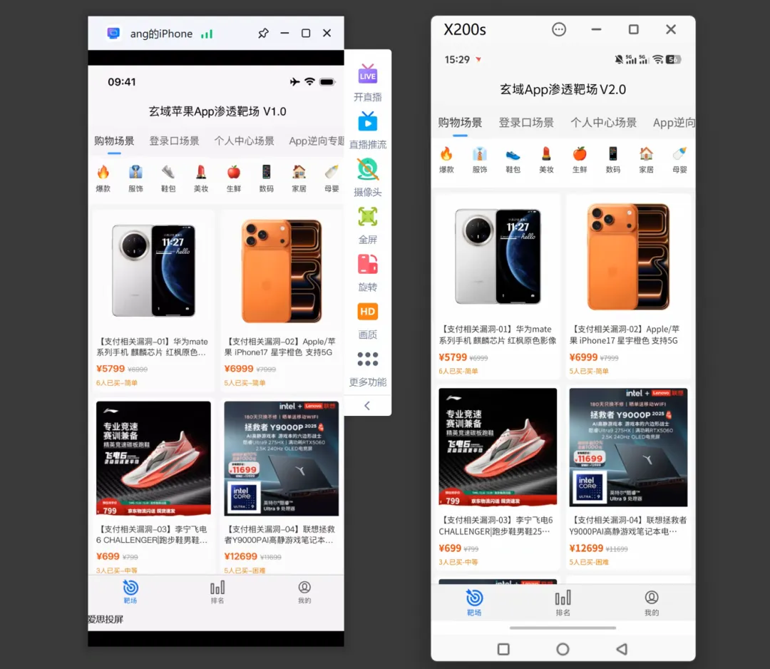 目前已建成,购物场景、登录口场景、个人中心场景、App逆向场景下的漏洞挖掘等等实战环境。