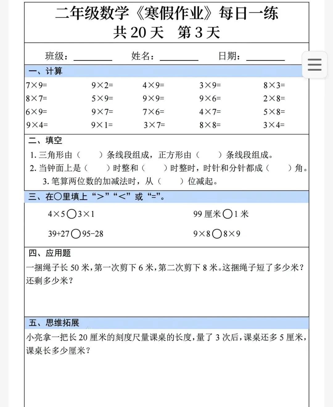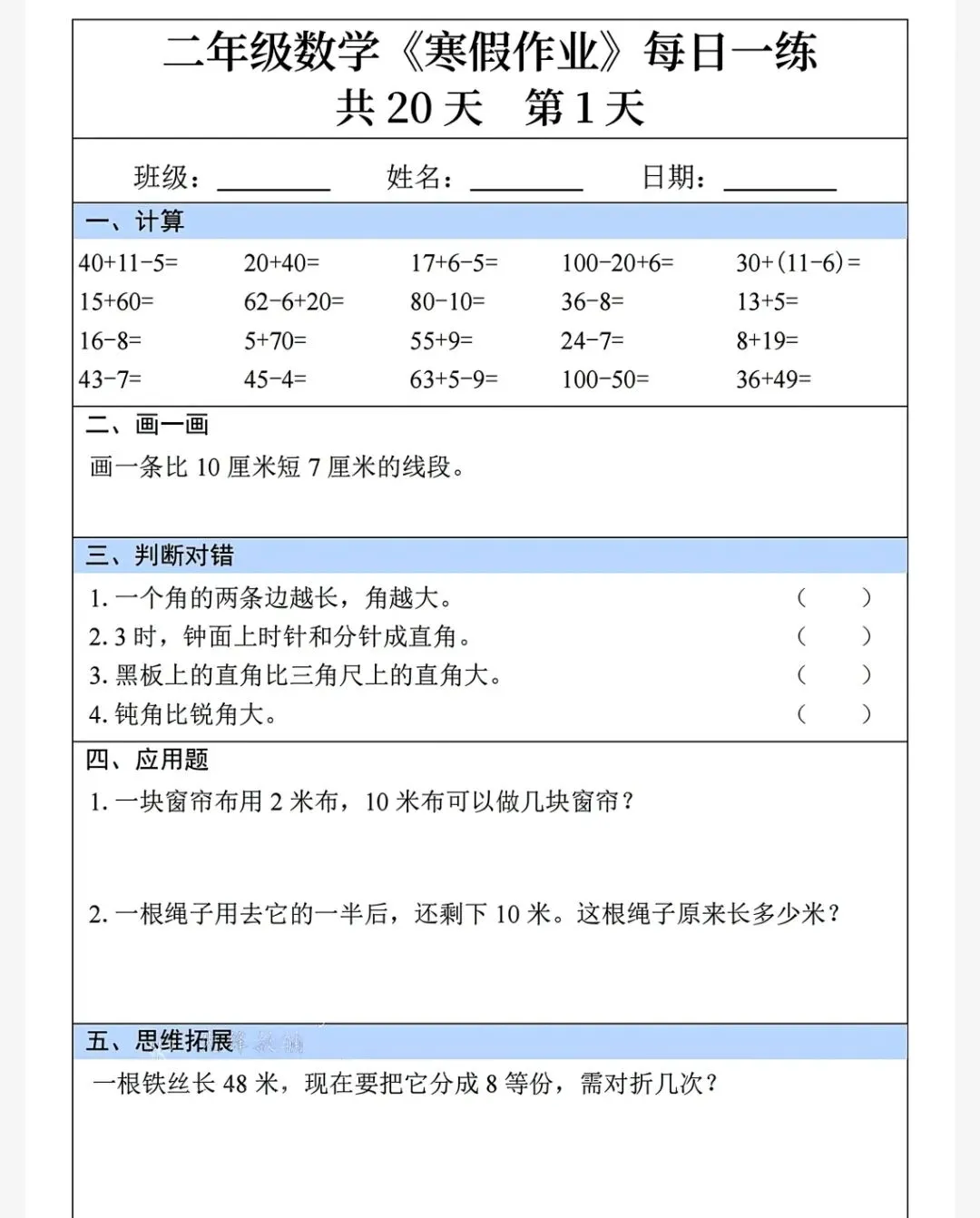 我用夸克网盘给你分享了「二年级数学寒假作…20天 」,点击链接或复制整段内容,打开「夸克APP」即可获取。