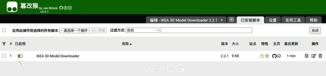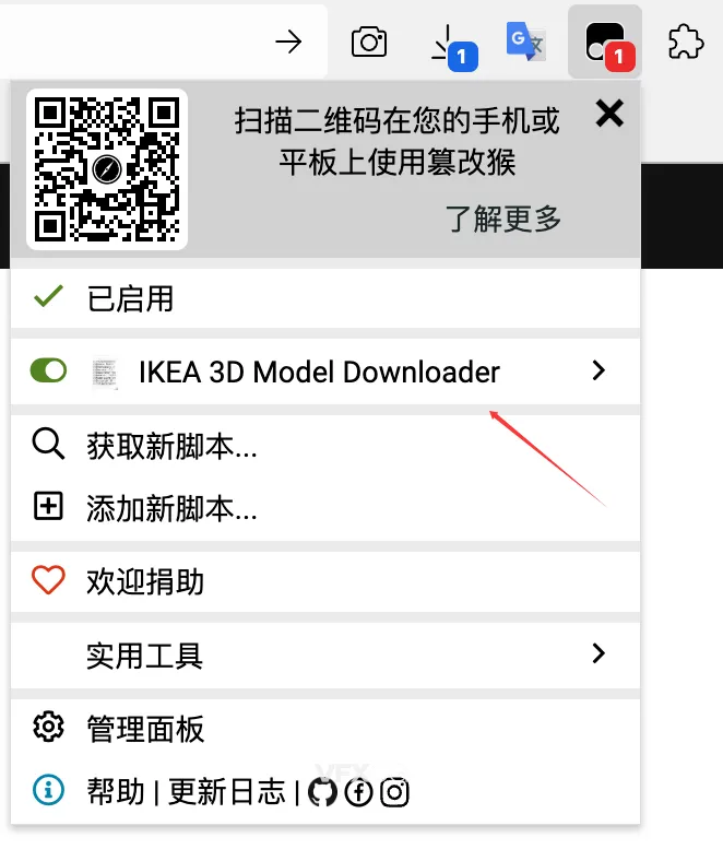 确认列表里有 “IKEA 3D Model Downloader” 这个脚本 -