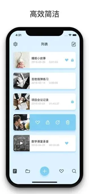 语音记事本,可在你录音的同时,添加备注,插入图片。应对采访,会议记录,课堂,讲座等重要场合,轻松记录每一个重要时刻。