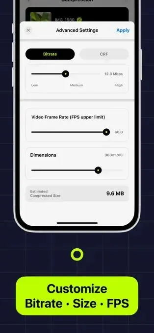 Video Compress 只需对视频进行压缩,从而在设备上节省更多存储空间,而不会降低内容的画质。
