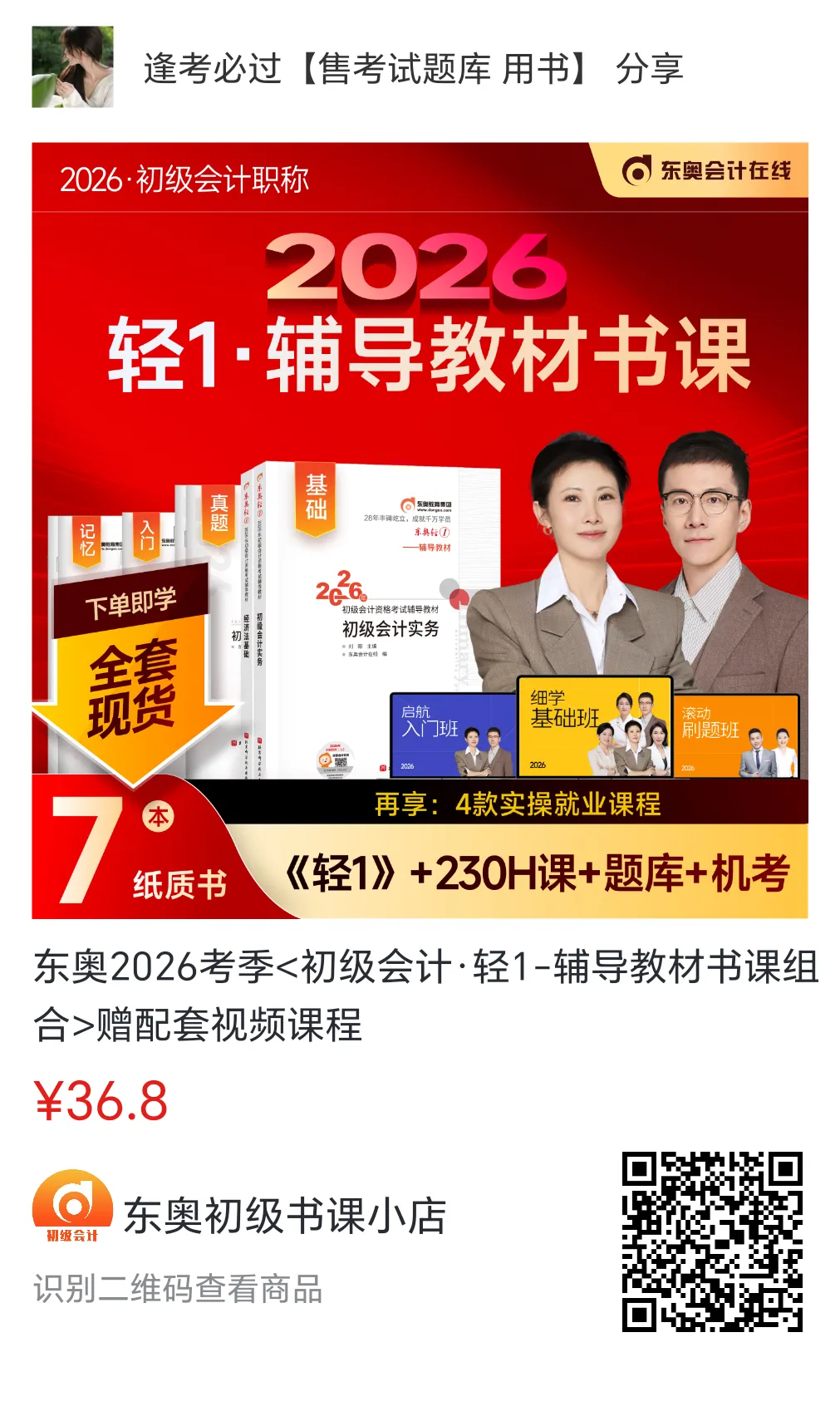 本站文章均为手工撰写未经允许谢绝转载:夜雨聆风 » 【初会】26年初级会计资料合集pdf版(网课+学霸笔记+必刷题+速记口诀+常用会计科目表+考点+思维导图+历年真题)